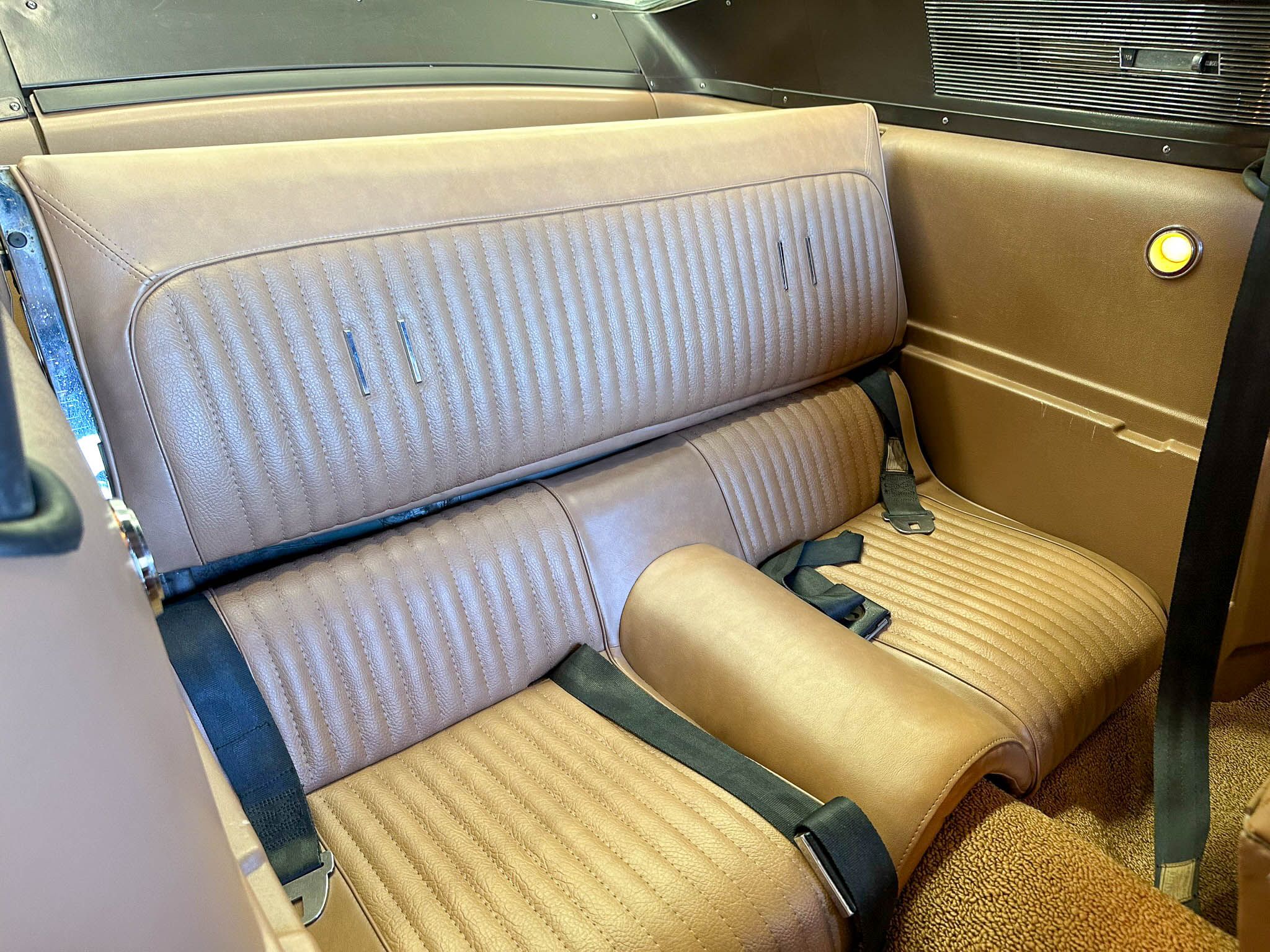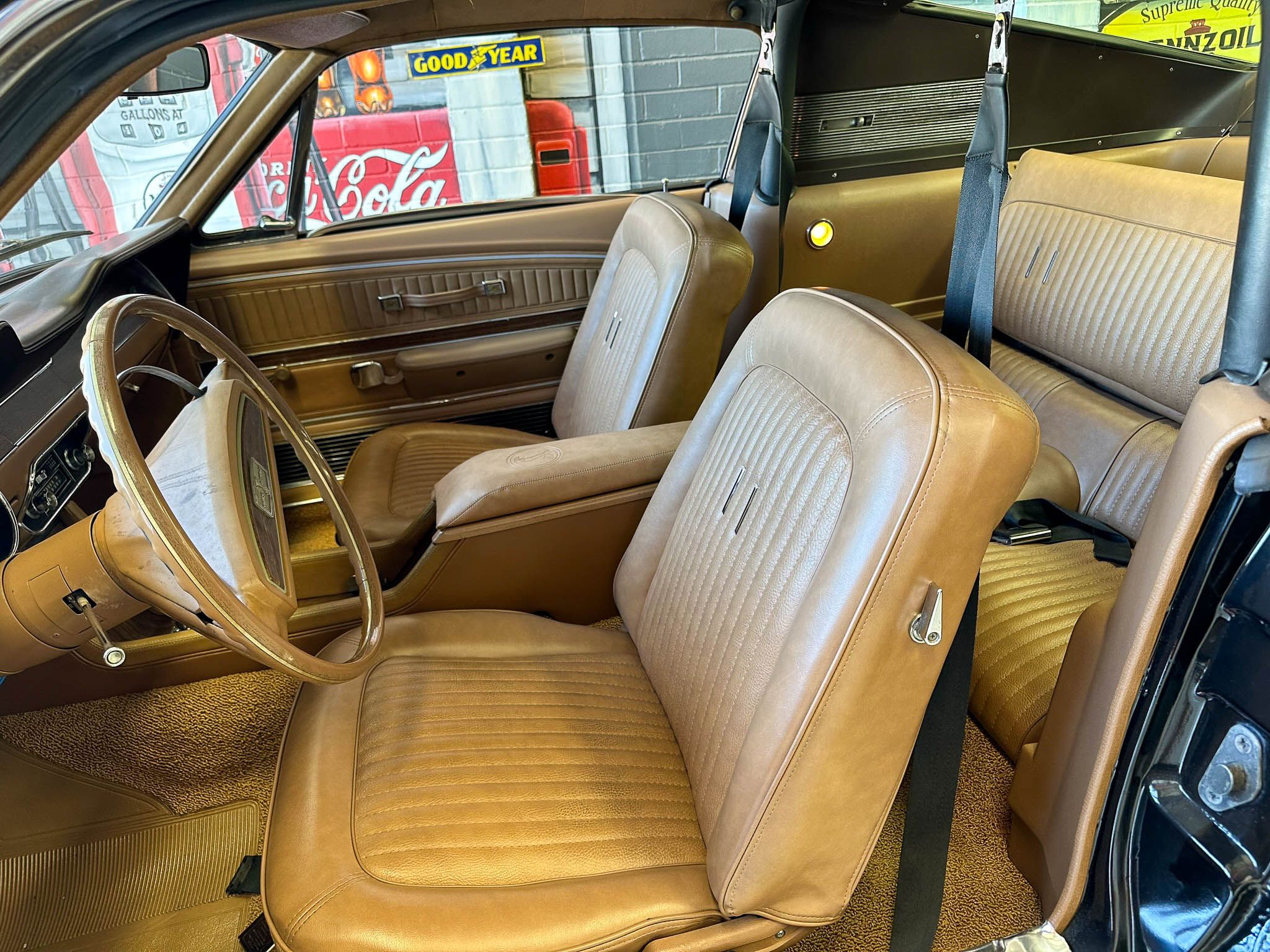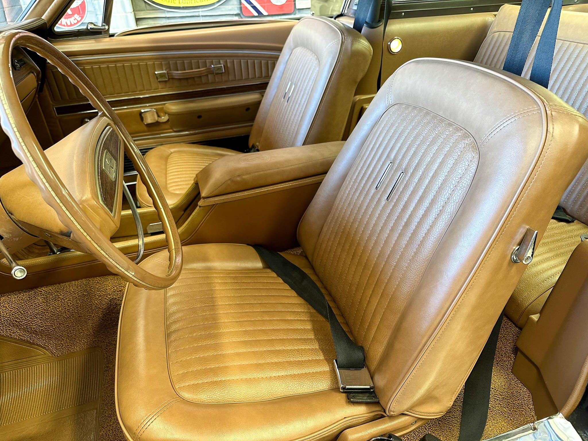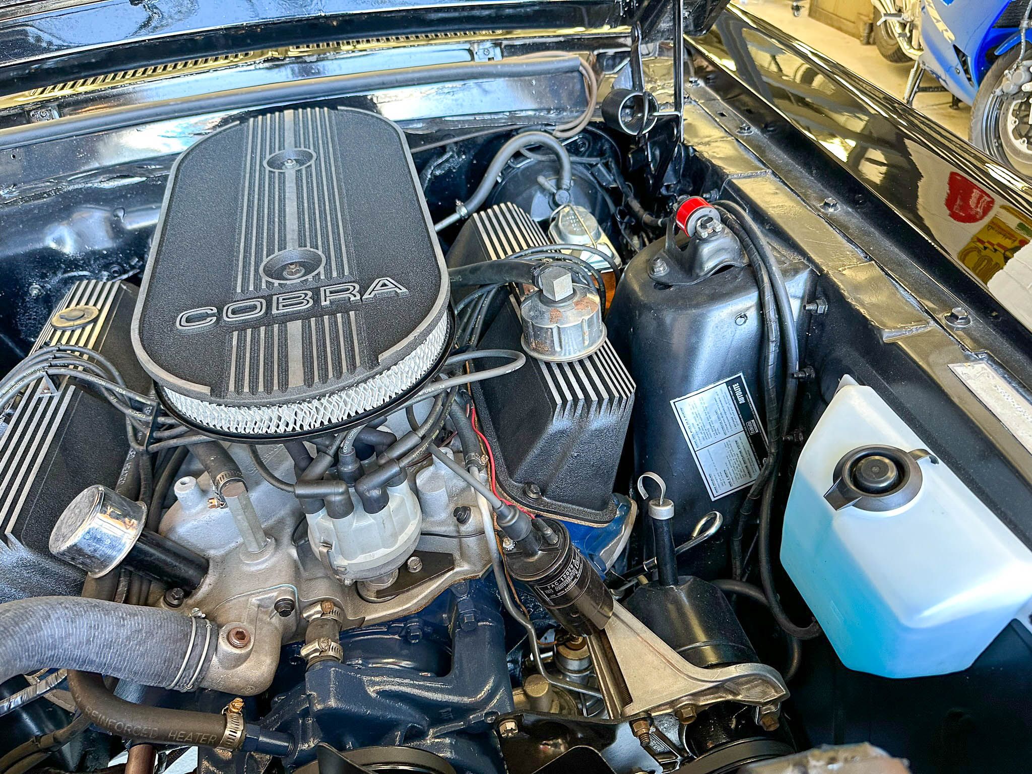 Equipped with the GT500’s upgraded suspension with an anti-roll bar, front coil springs and rear leaf springs. Inside, the Interior Décor Group package sees a black vinyl accented handsomely with woodgrain trim. You can also expect bucket seats, a woodgrain steering wheel with a Shelby centerpiece and vintage gauges. Under the hood lies Ford’s Cobra Jet V-8 mated to a 3-speed automatic transmission.