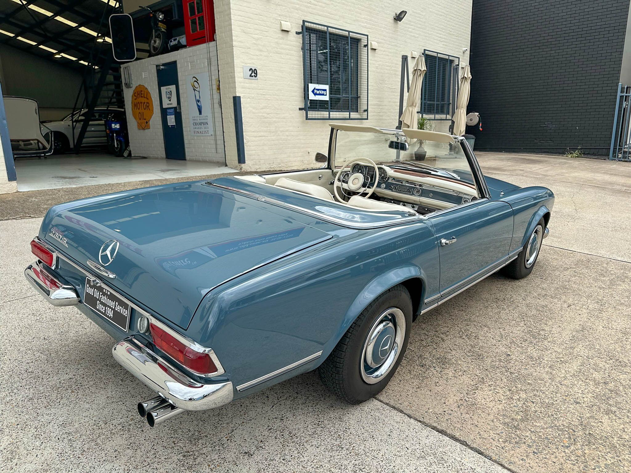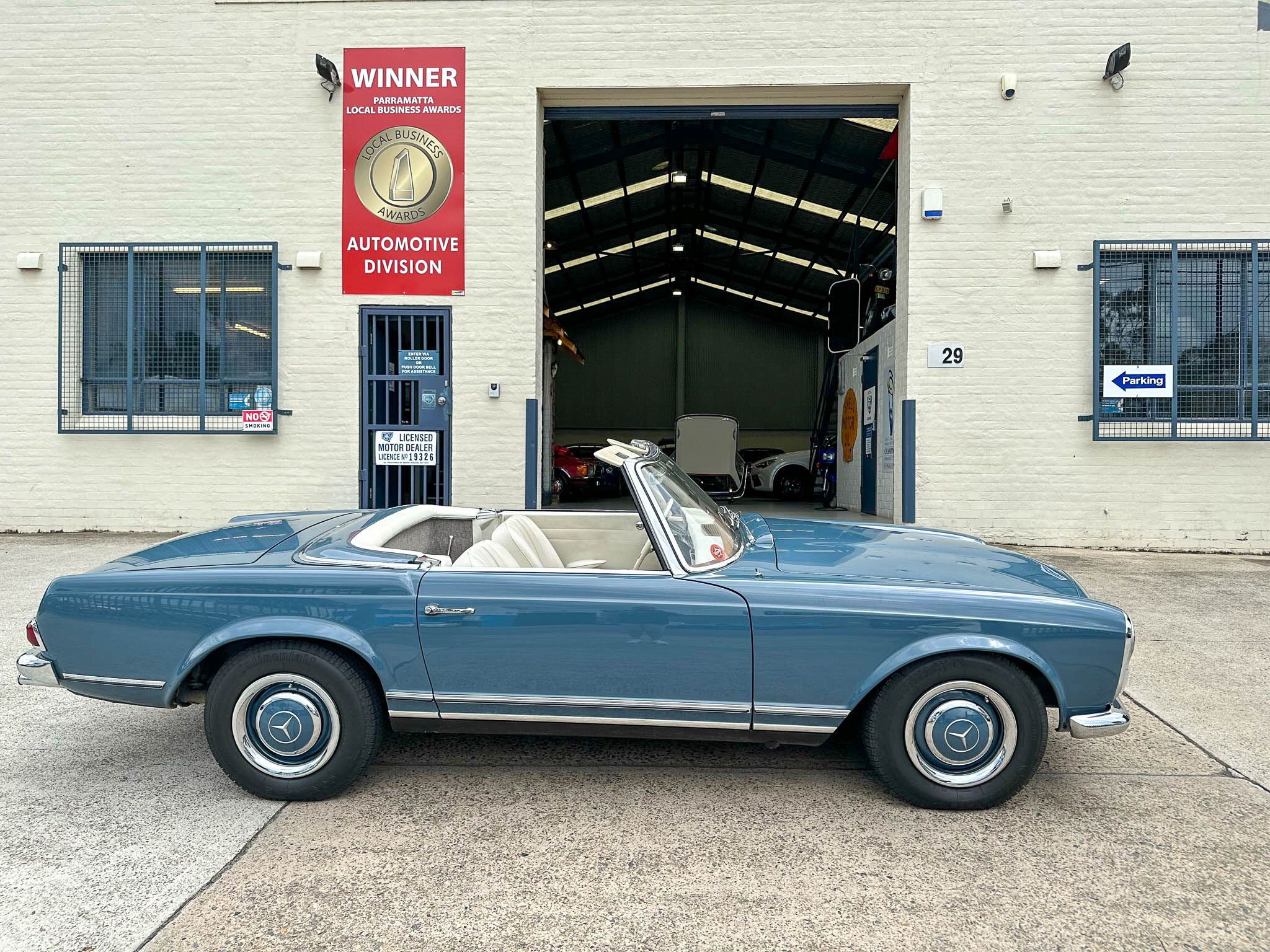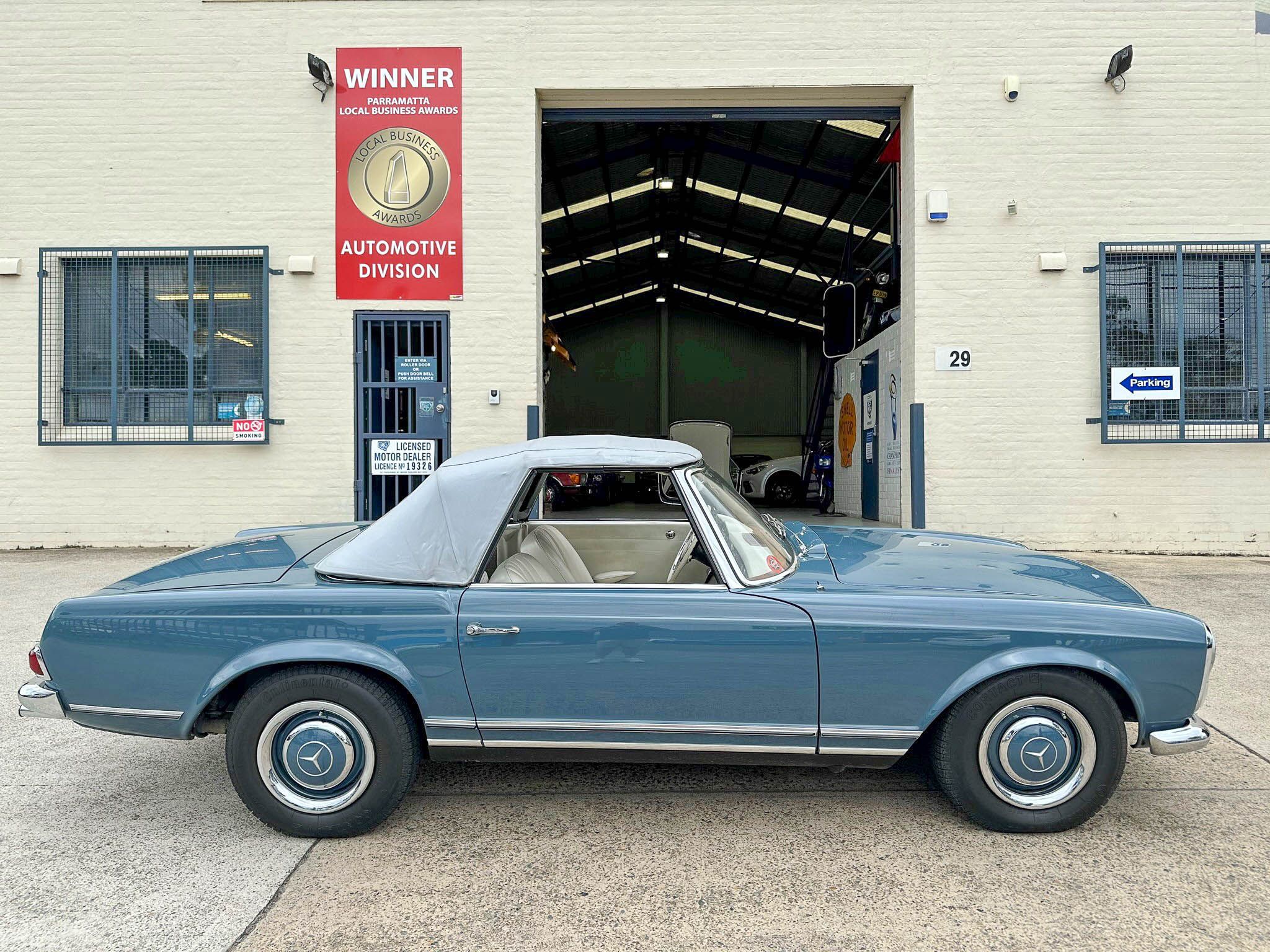 – 1966 Mercedes Benz 230SL Pagoda in Blue with grey soft top