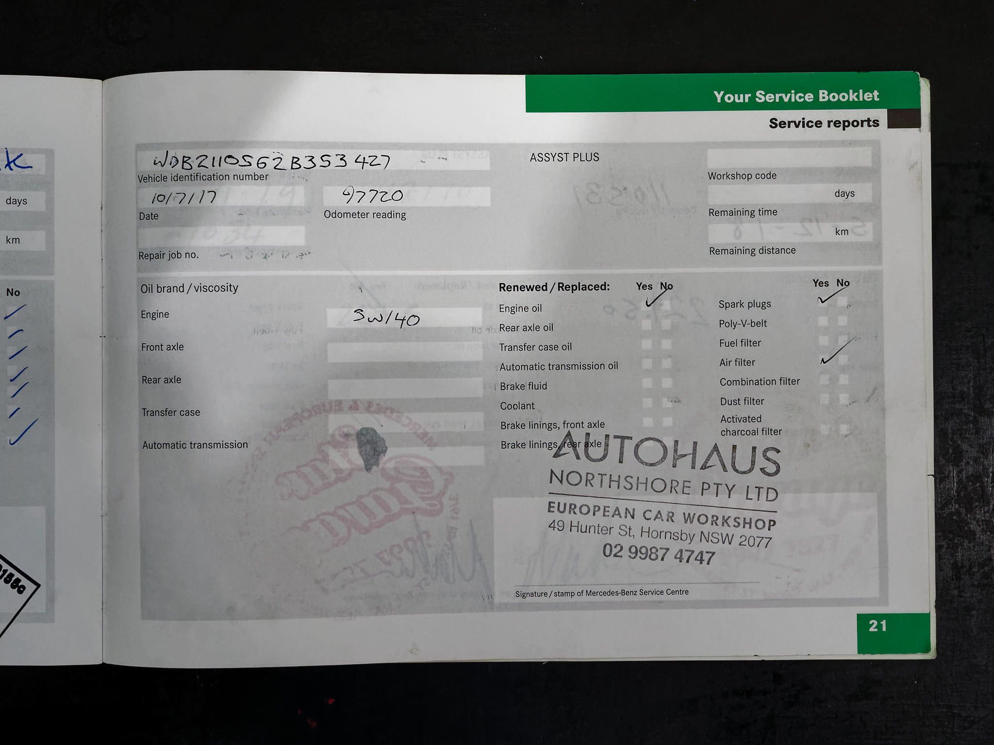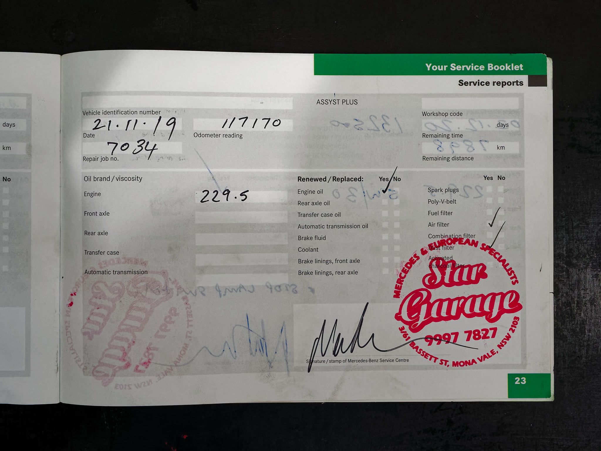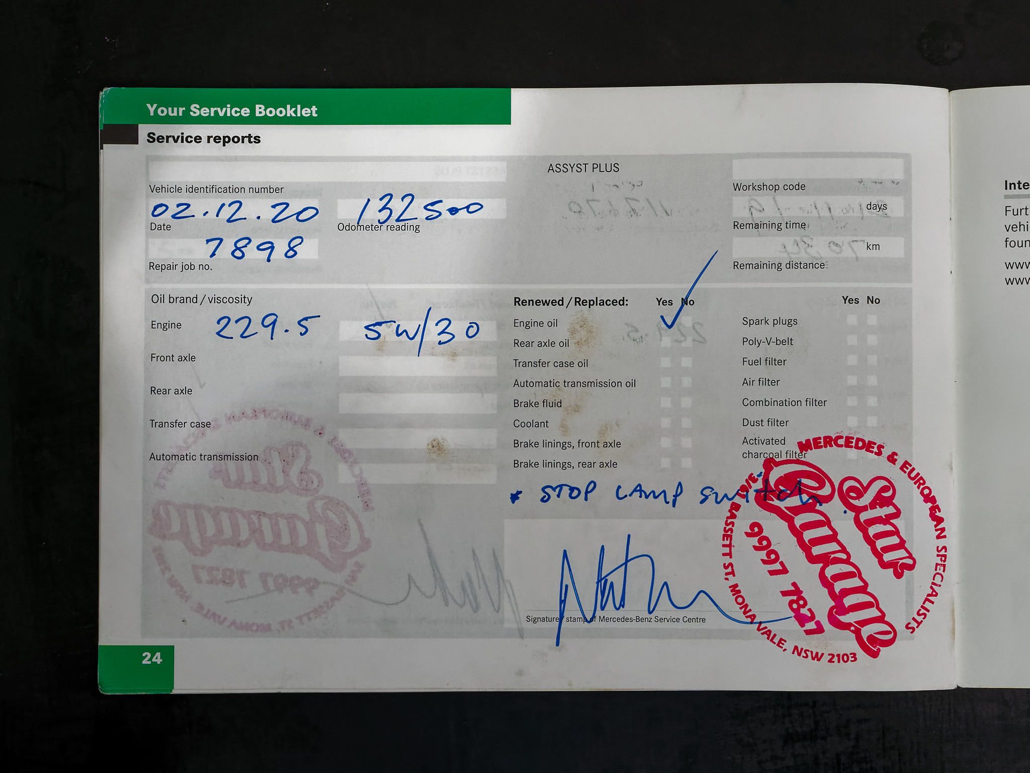 – Log books and service history