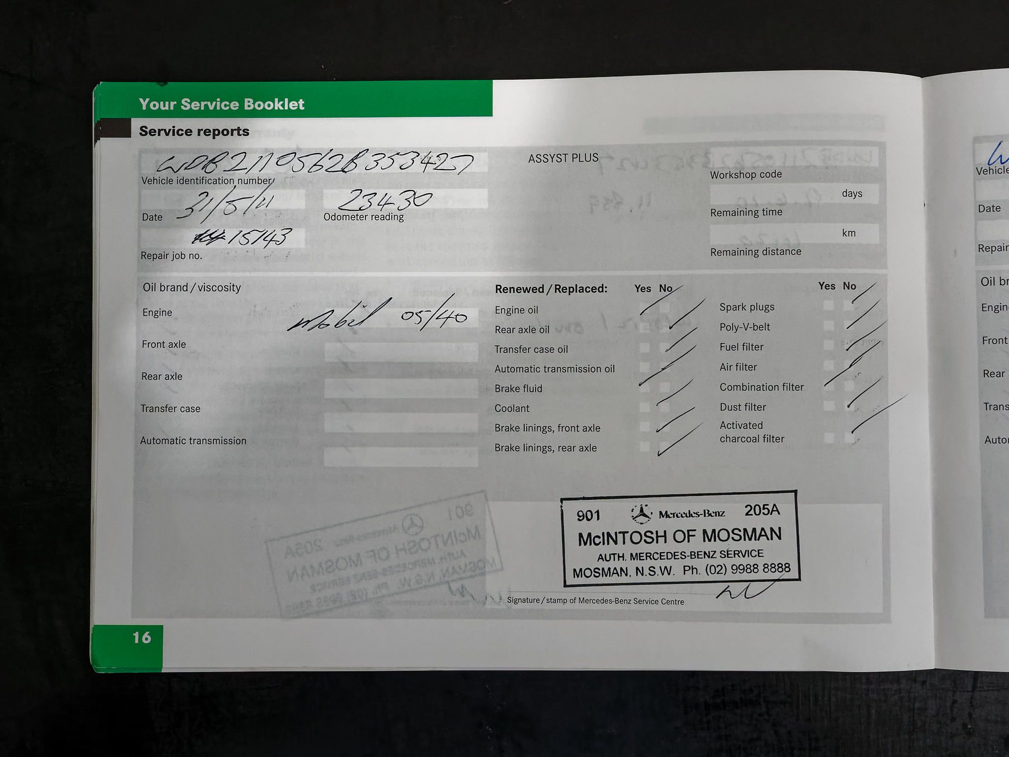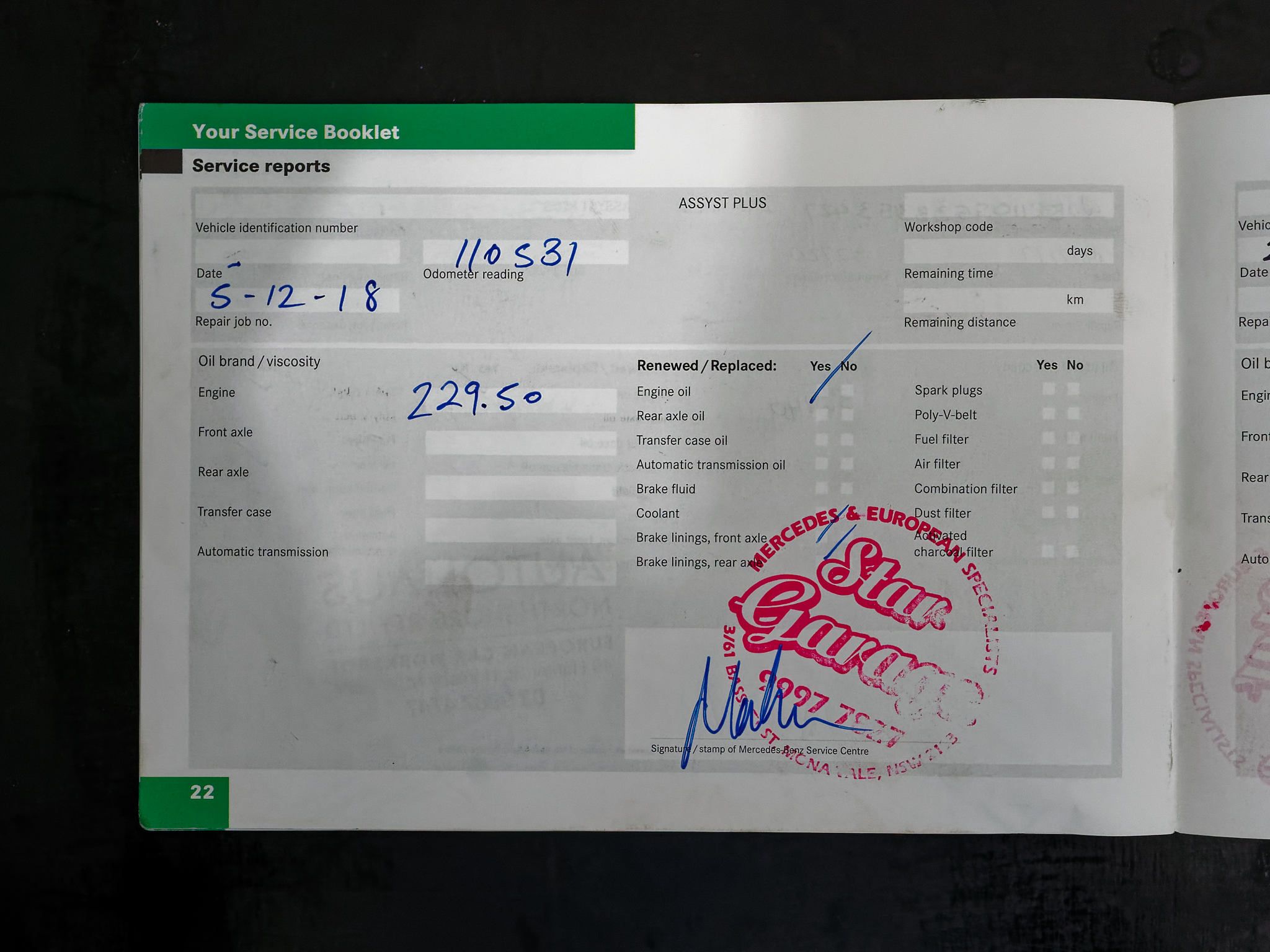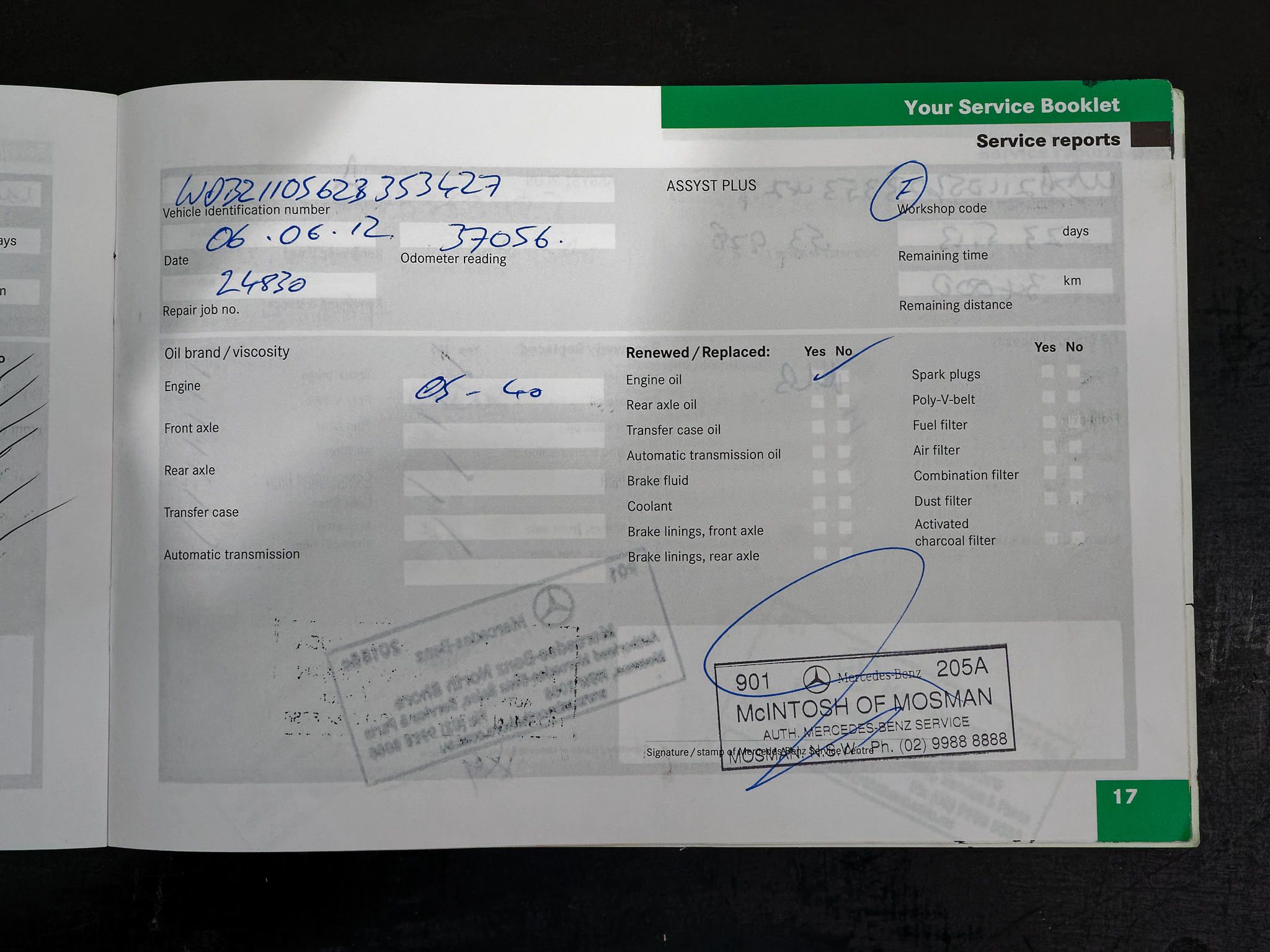 – Log books and service history