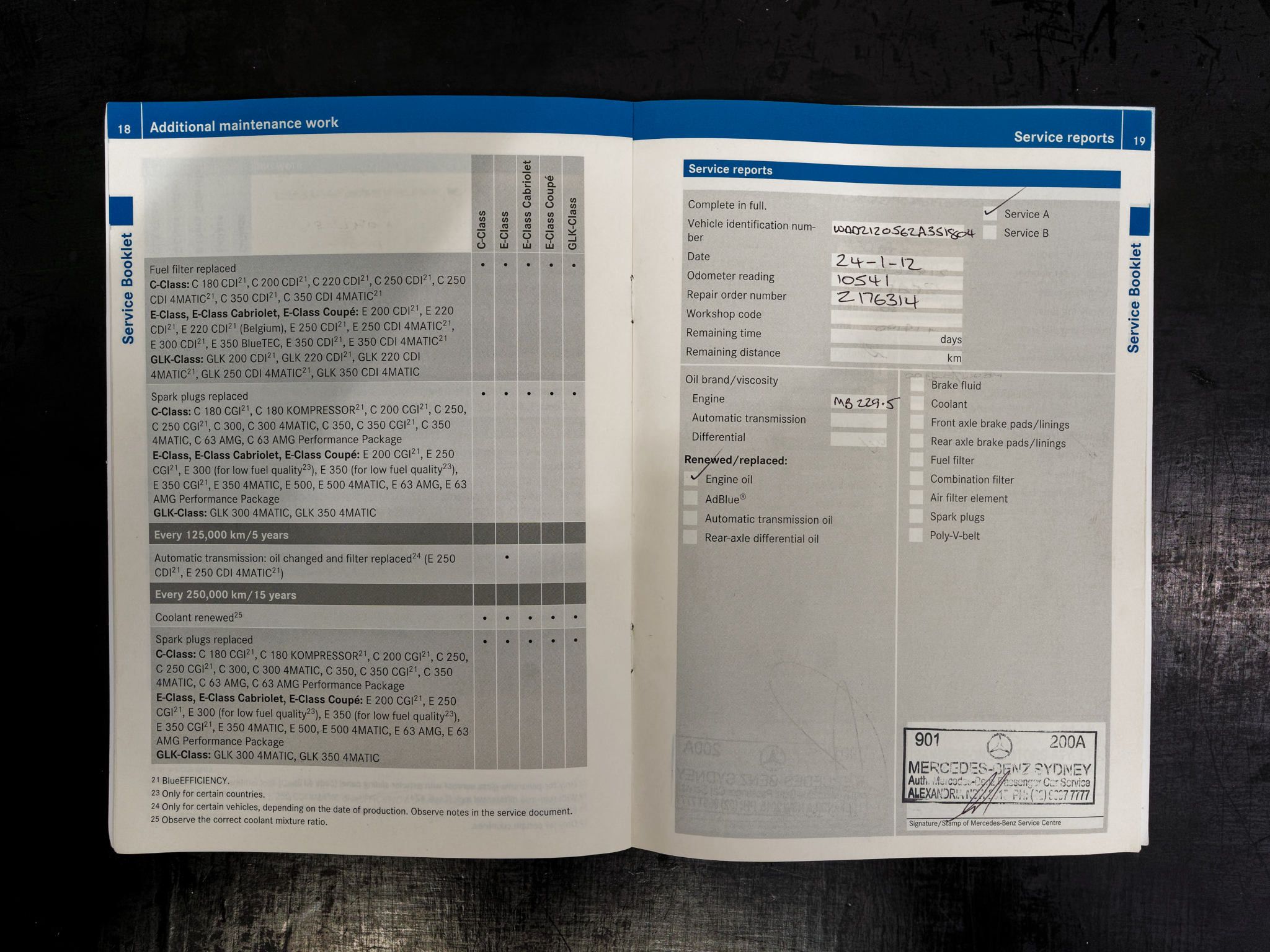 – Log books and service history