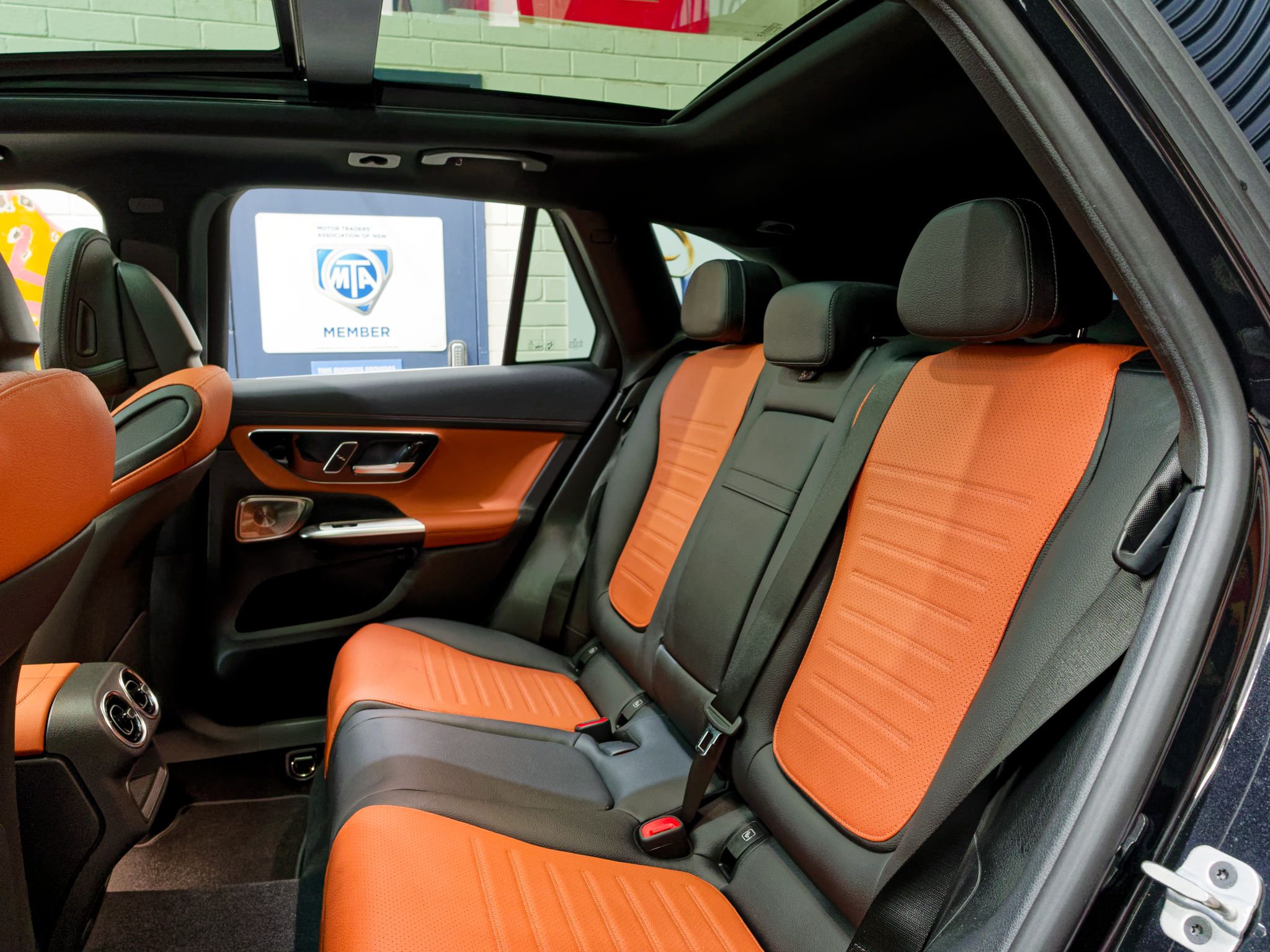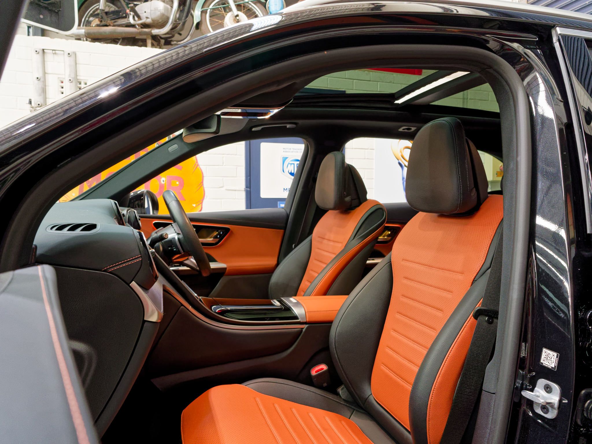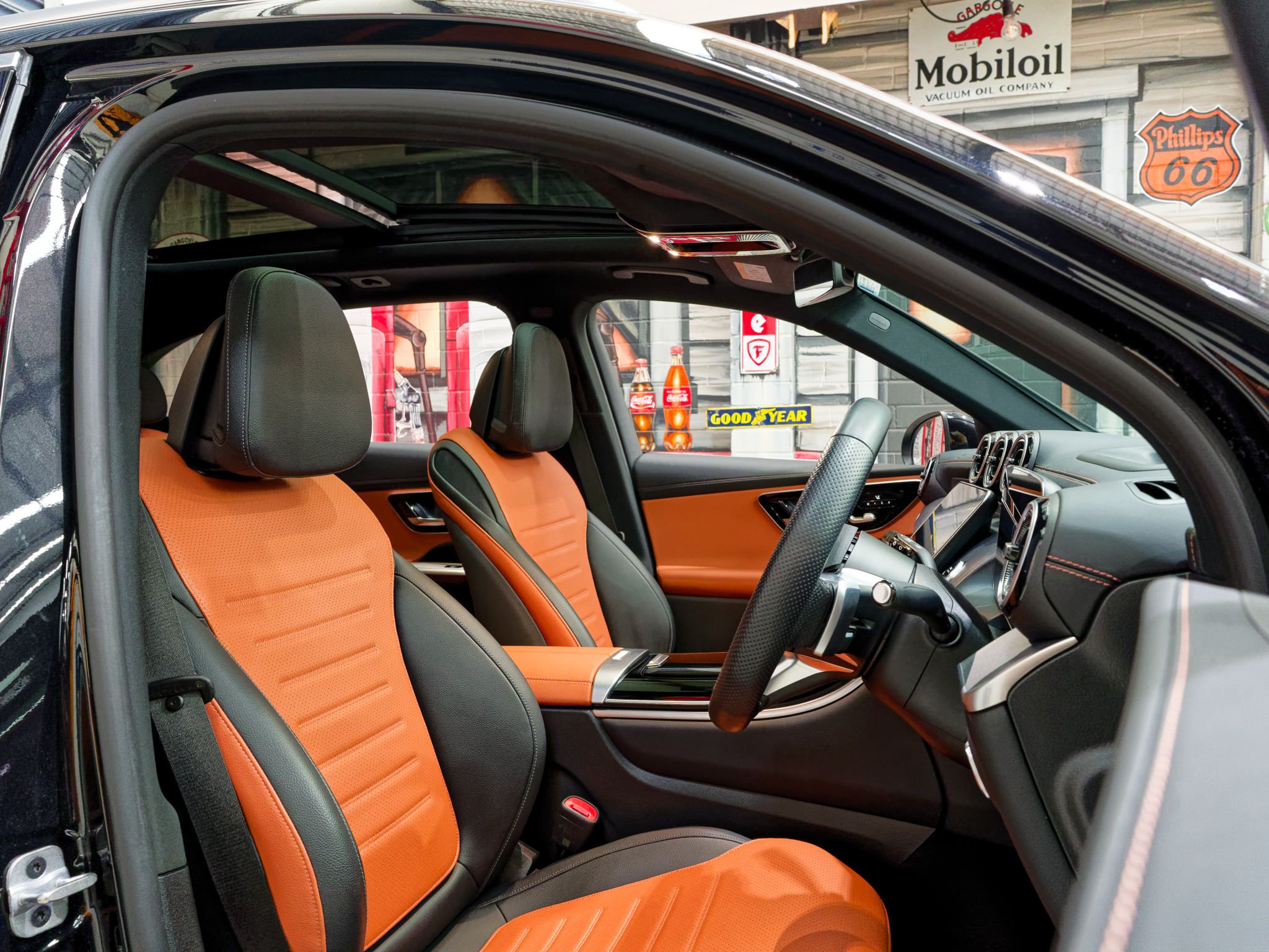 – metallic black with stunning tan and black leather trim