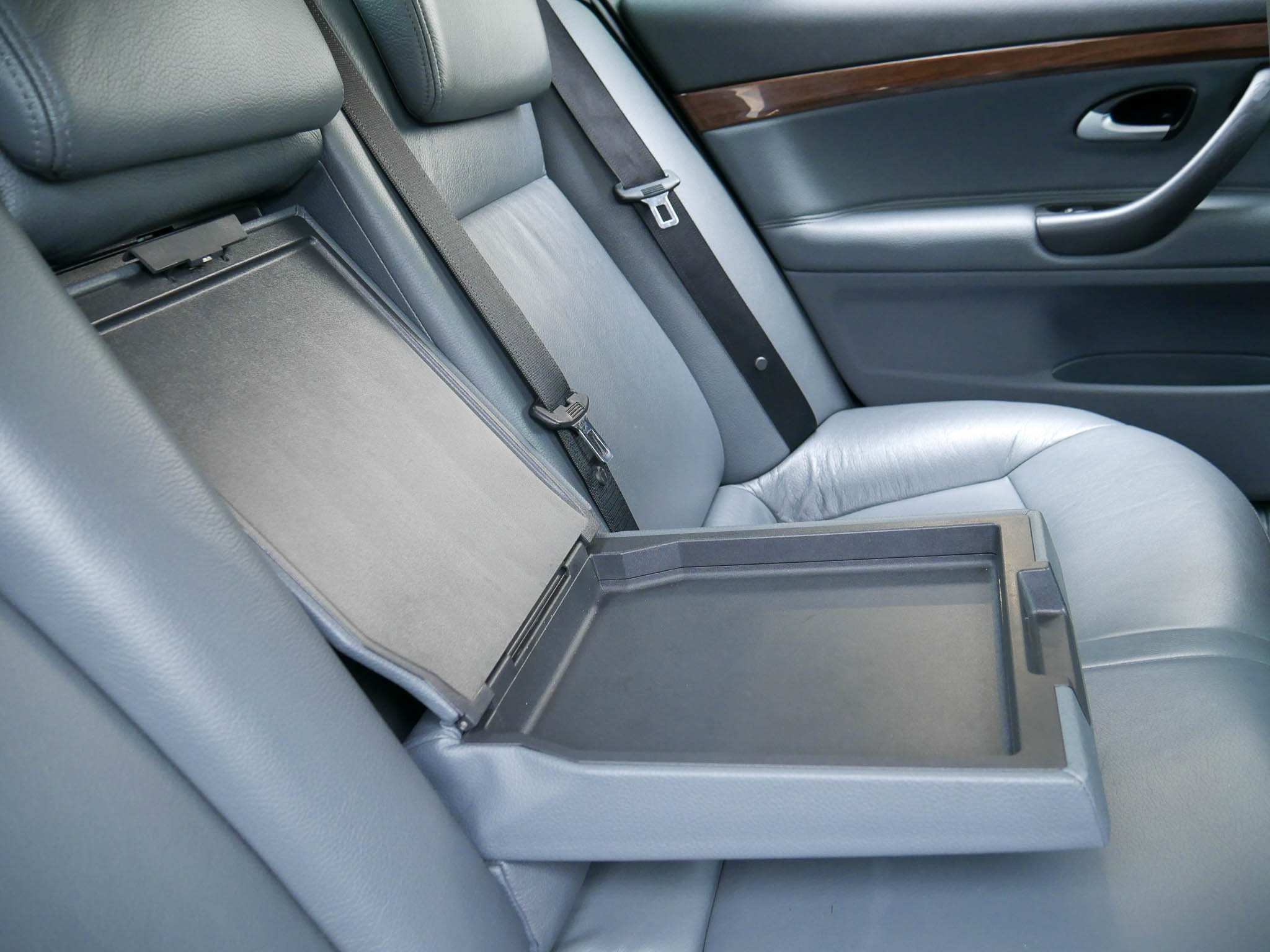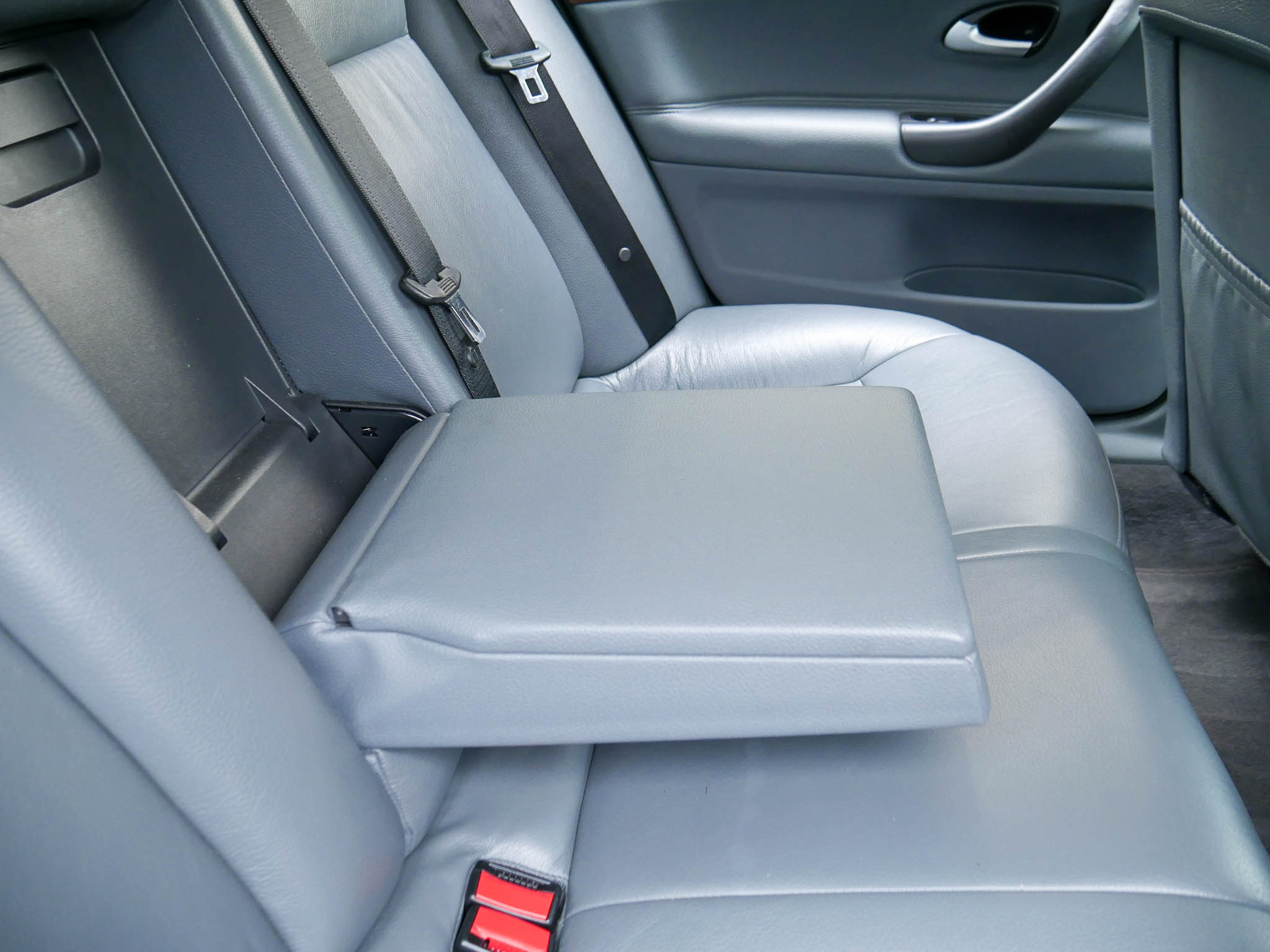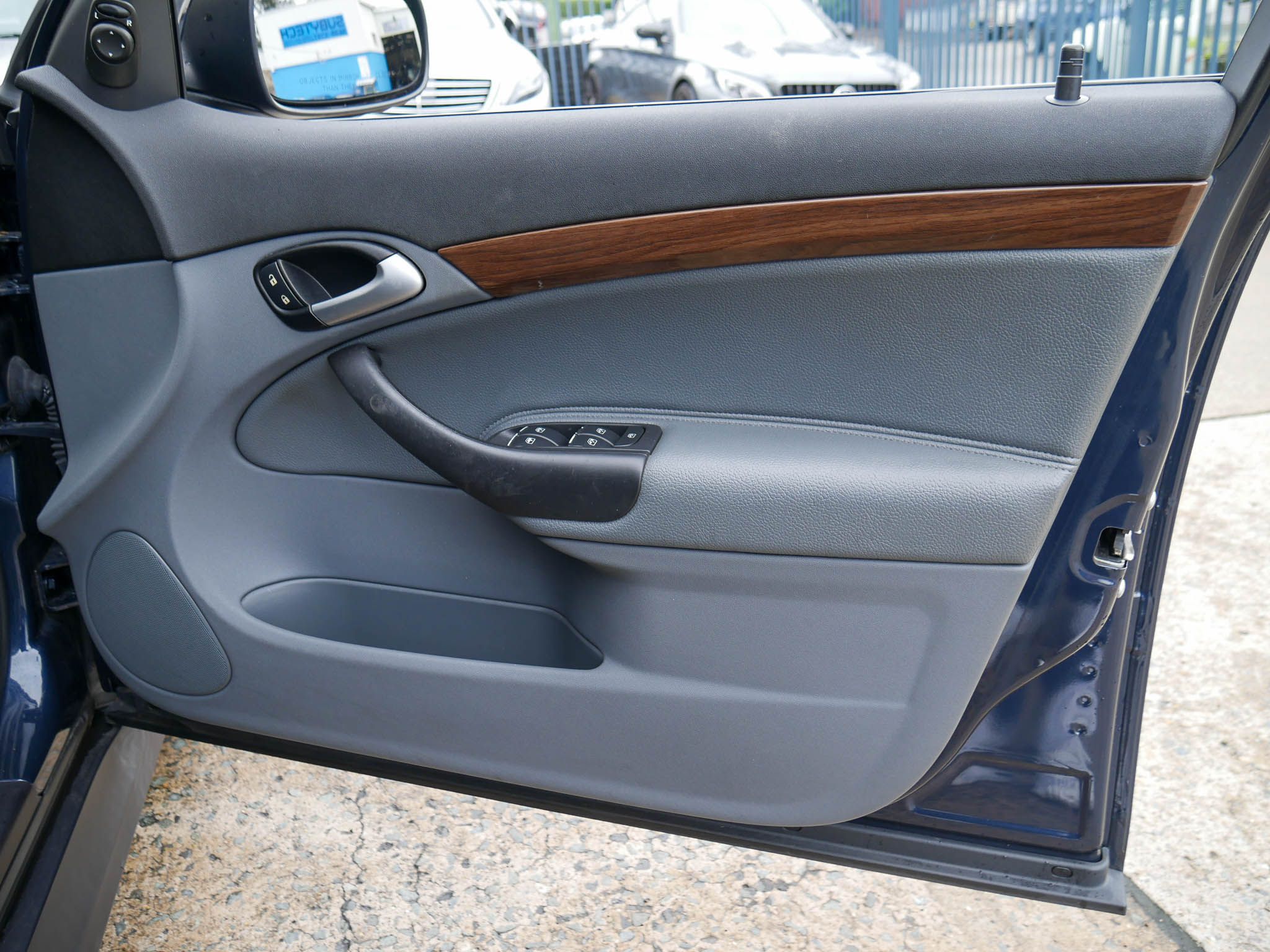 – Blue with grey leather